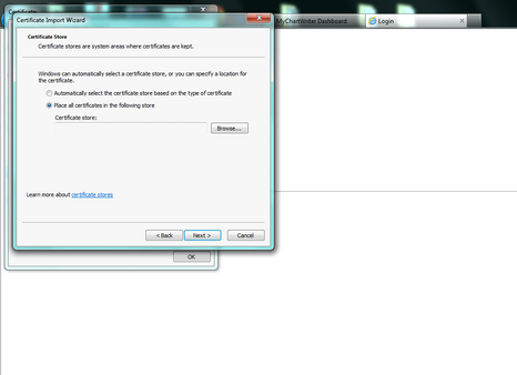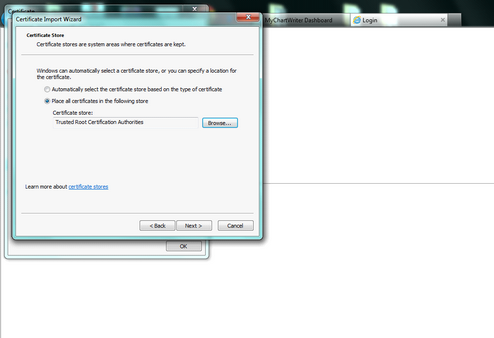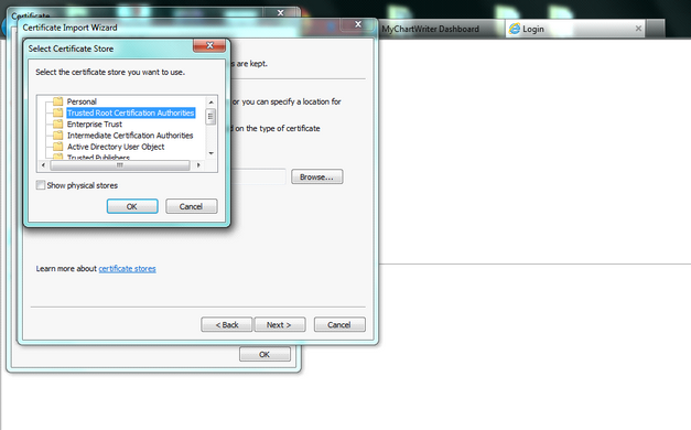 Click on Place all certificates in the following store, click Browse.
