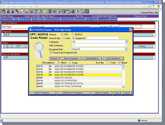 - CPT/HCPCS codes and descriptions can be selected for specifying orders and procedures.